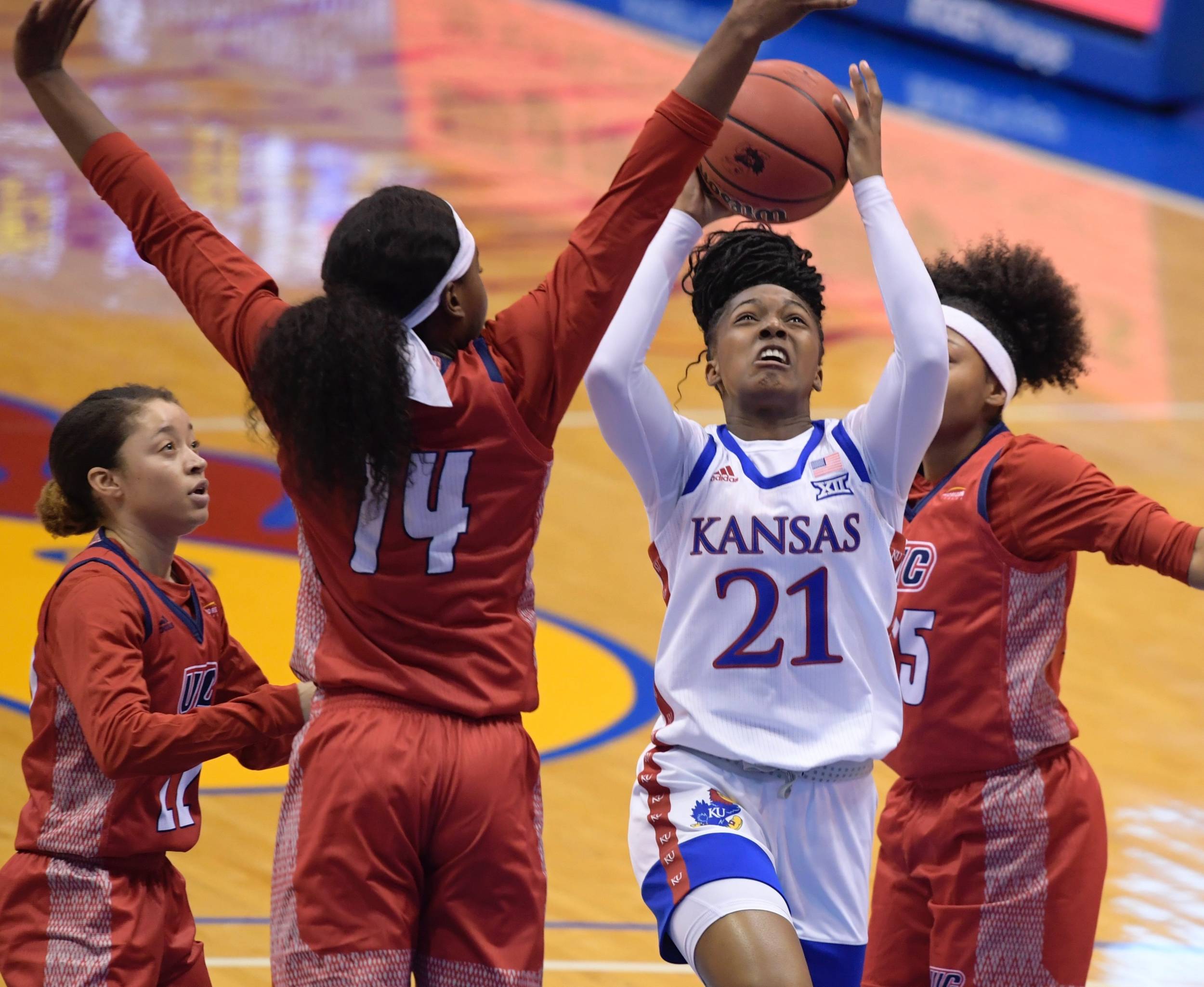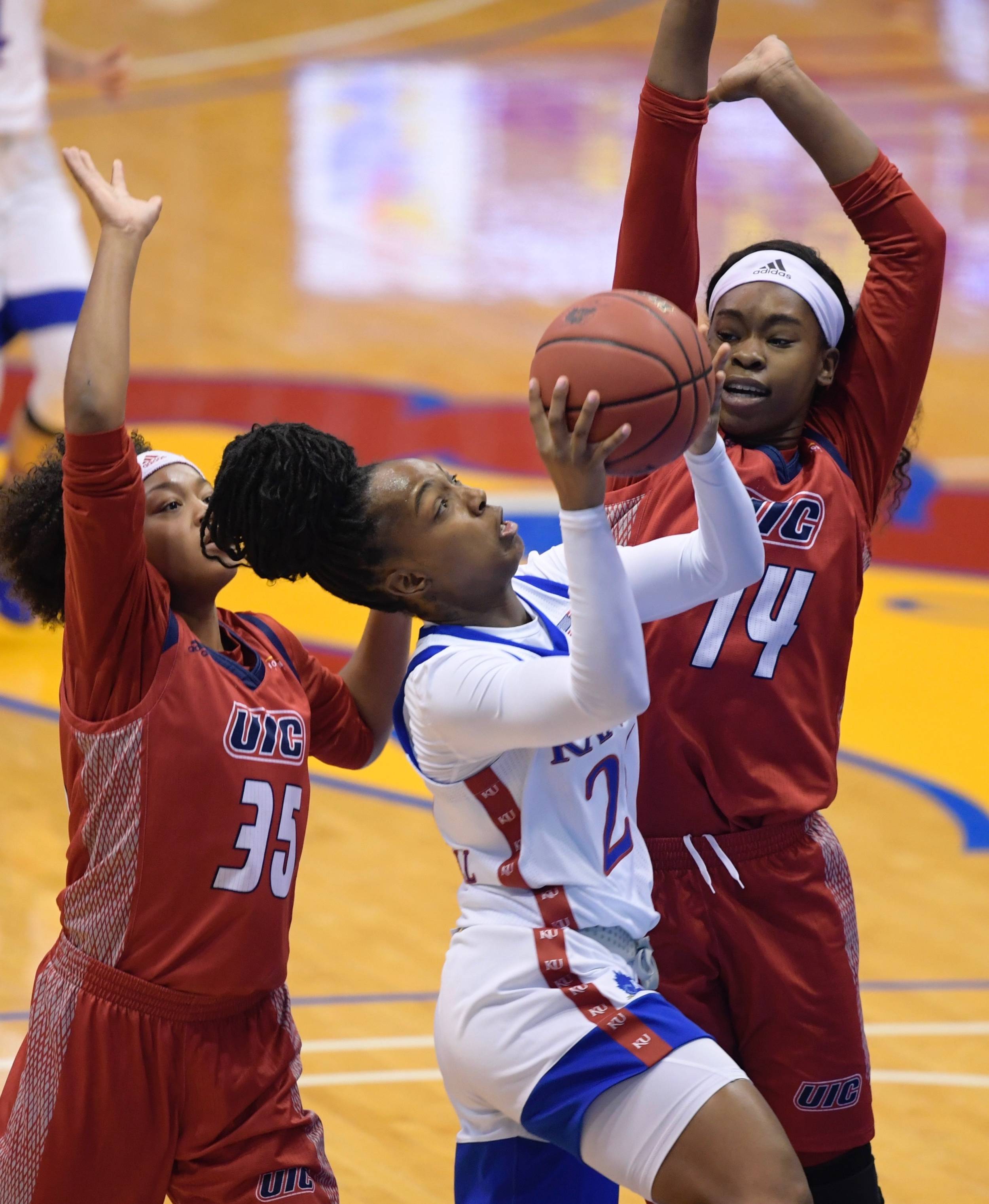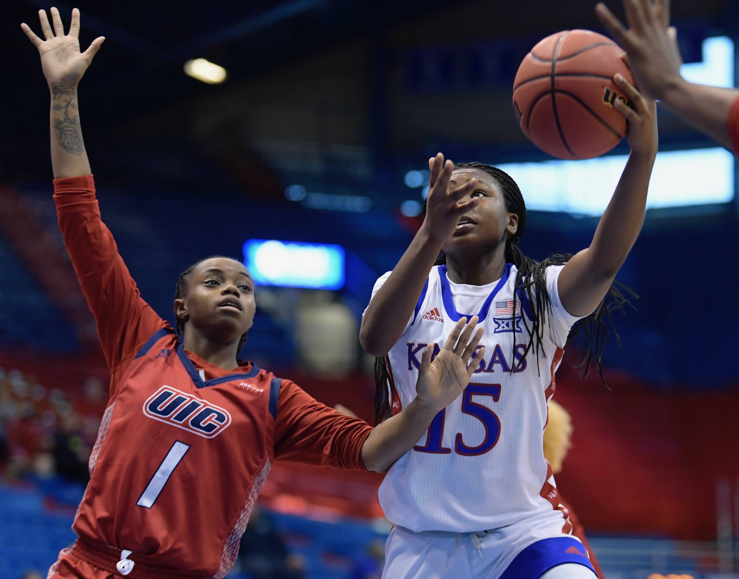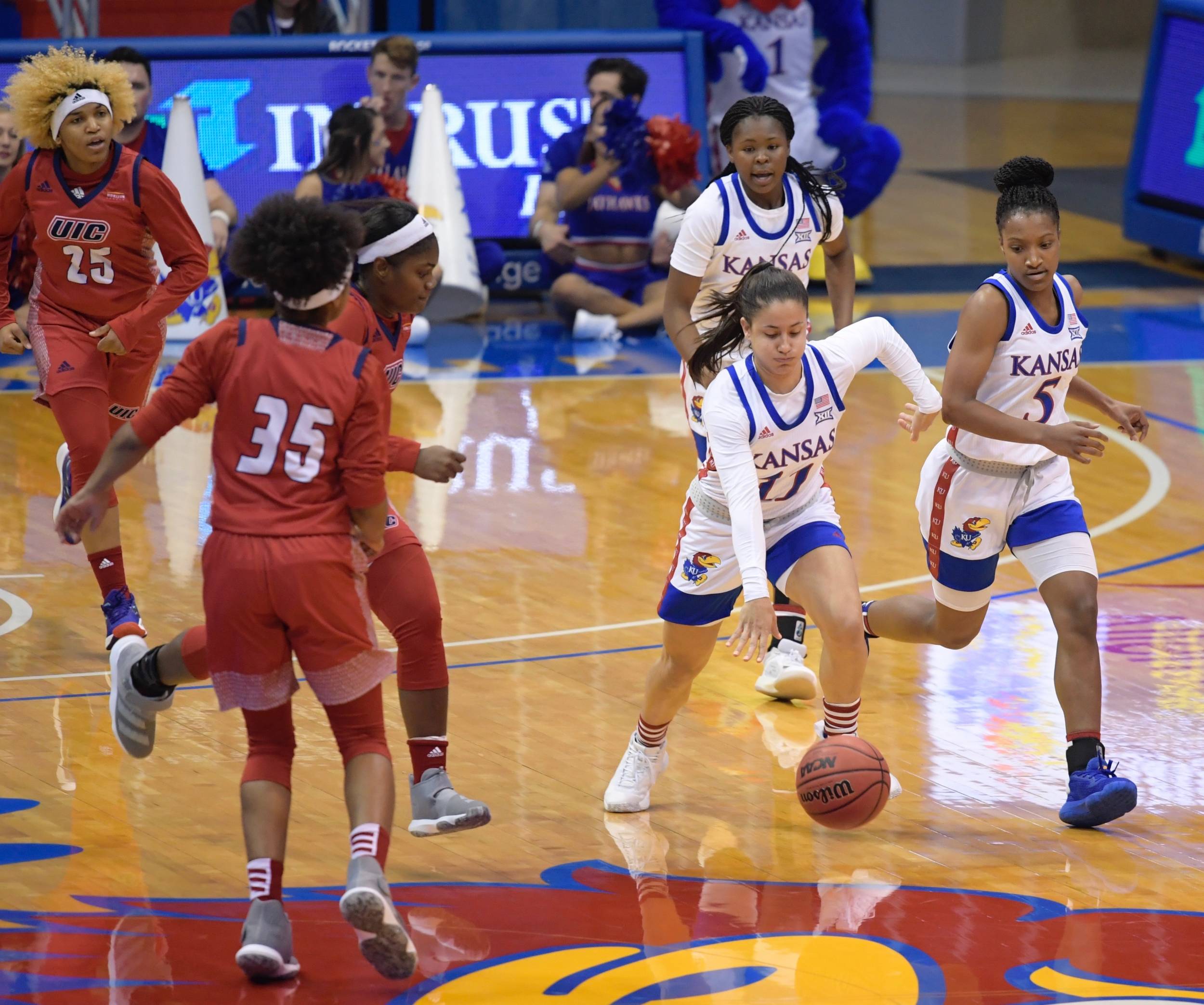 LAWRENCE, Kan. – The Jayhawks won its second straight game in dominant fashion, beating the University of Illinois at Chicago 91-50 on the back of 17 points from leading scorer Aniya Thomas and a double-double from newcomer Tina Stephens.
