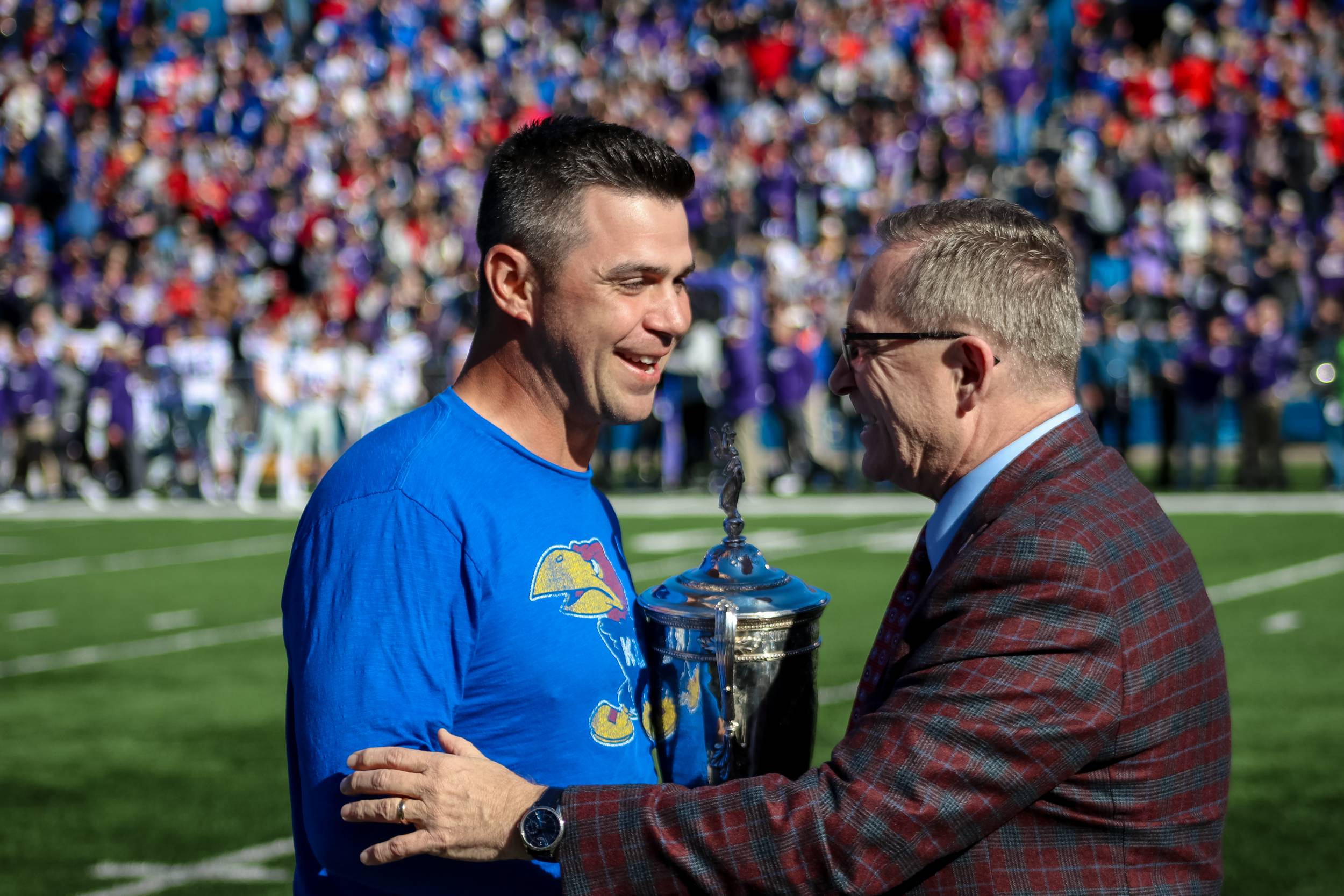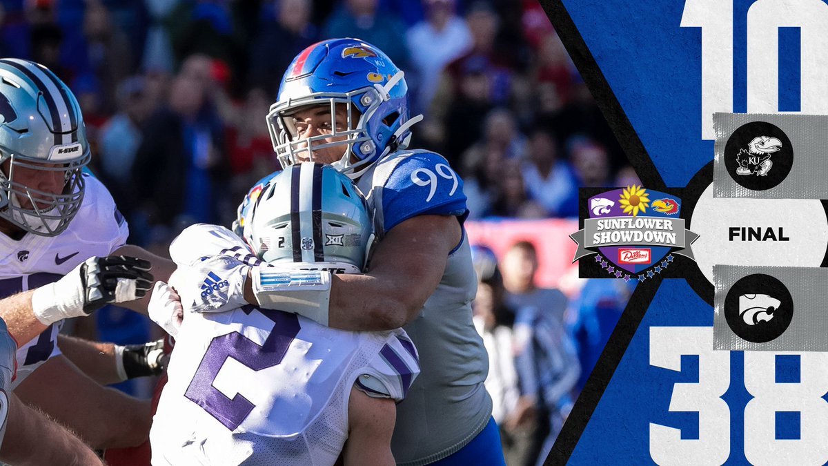 LAWRENCE, Kan. – The running game of the No. 22-ranked Wildcats proved too much to handle as the Kansas football team fell to in-state rival Kansas State, 38-10, in the 117th meeting of the Dillons Sunflower Showdown inside David Booth Kansas Memorial Stadium.