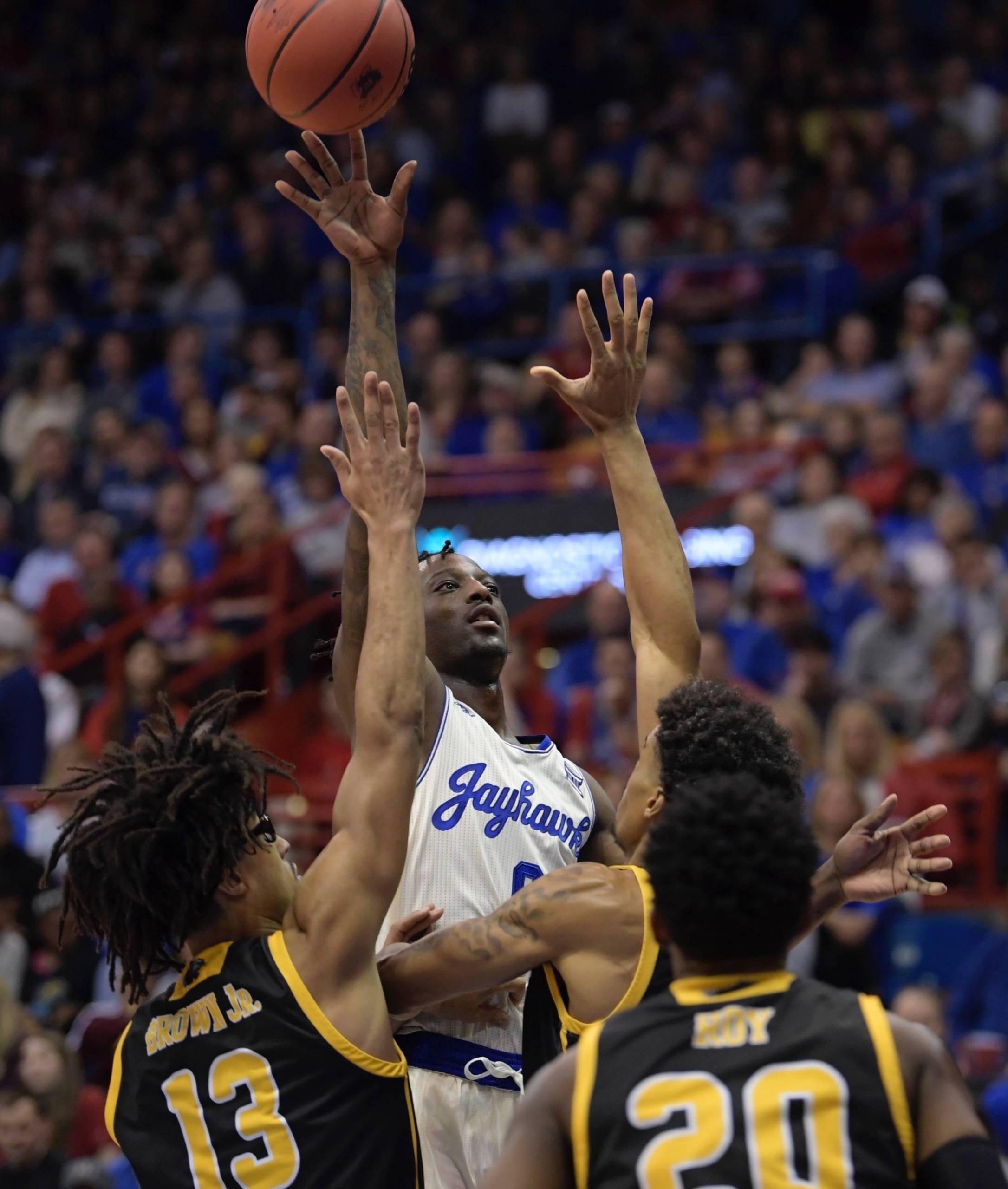 Dotson and Agbaji were the top-scoring Jayhawks, scoring 22 apiece and going a combined 8-of-14 from beyond the 3-point arc. Azubuike added his third double-double of the season and 11th of his career, collecting a career-high 17 rebounds.