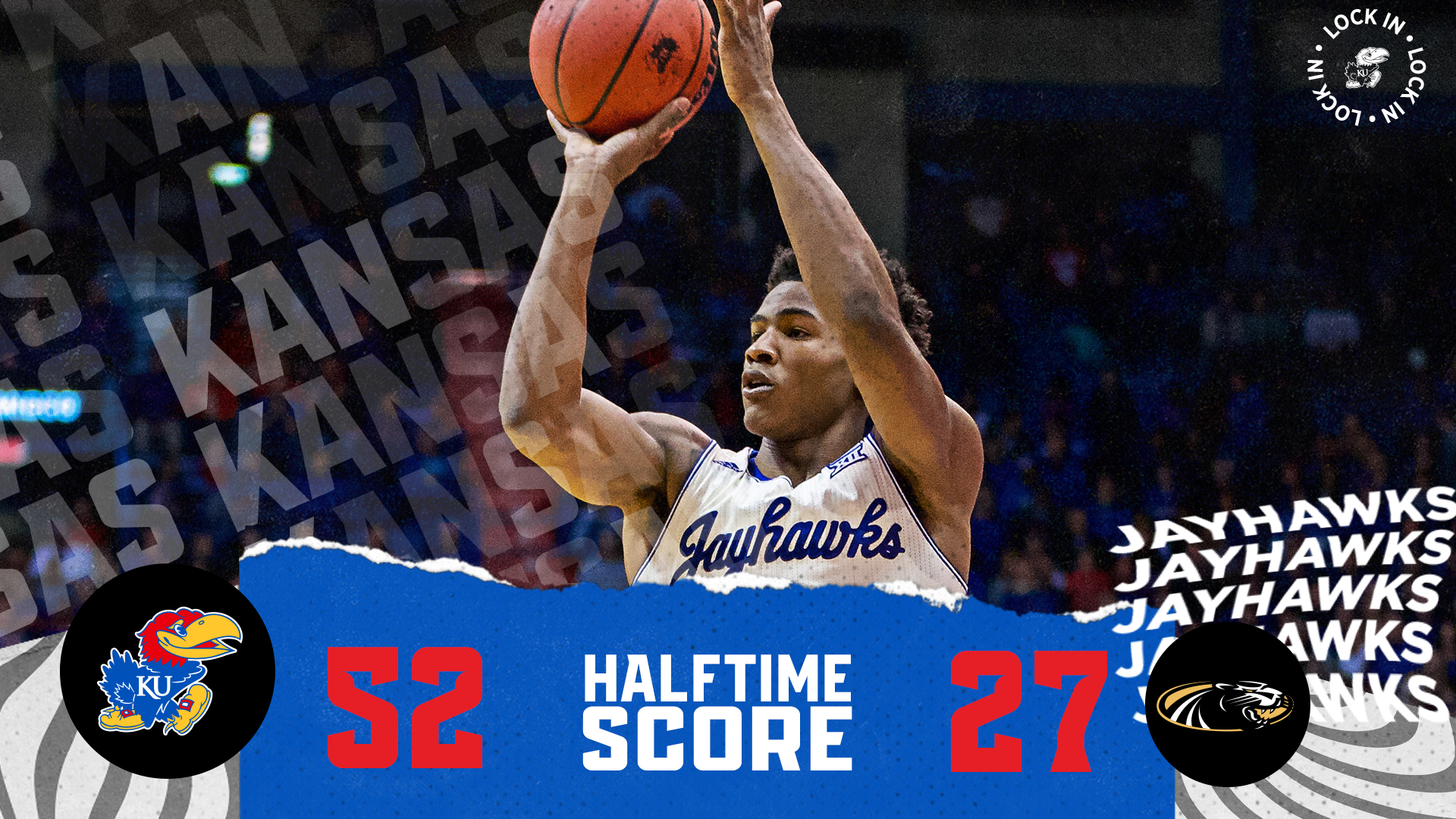 Seven different Jayhawks scored during a 20-3 KU run that saw its lead swell to 45-15 by the six-minute mark. The home side would take a 52-27 edge into the halftime locker room as all nine Crimson and Blue clad players that hit the floor entered the scoring column over the first 20 minutes.