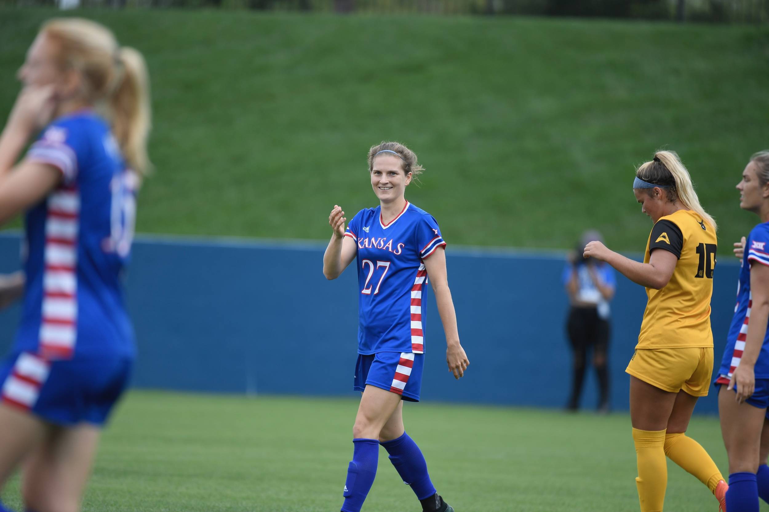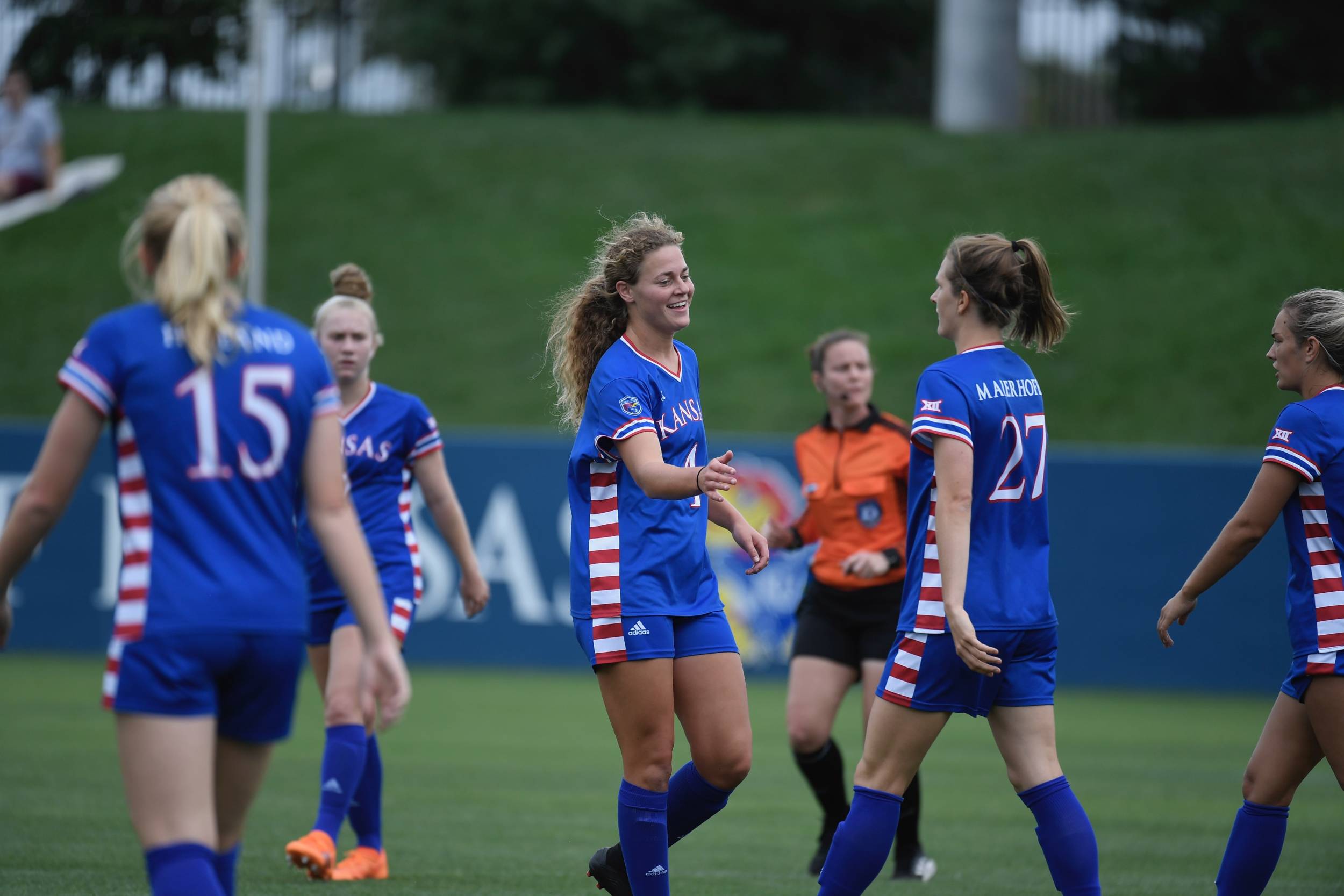 The Jayhawks came out ready to go, scoring at the 7:47 mark in the first half behind a Sophie Maierhofer goal from eight yards out after Ceri Holland found the senior in the center of the KSU box.
