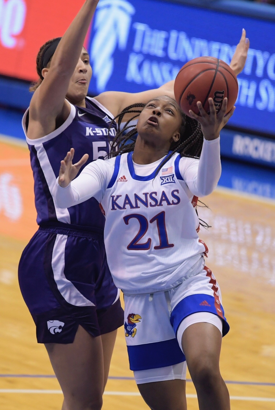 LAWRENCE, Kan. – Despite three Jayhawks scoring double-figures, the Kansas women’s basketball team fell, 69-61, to Kansas State in the Dillons Sunflower Showdown on Wednesday night in Allen Fieldhouse.
