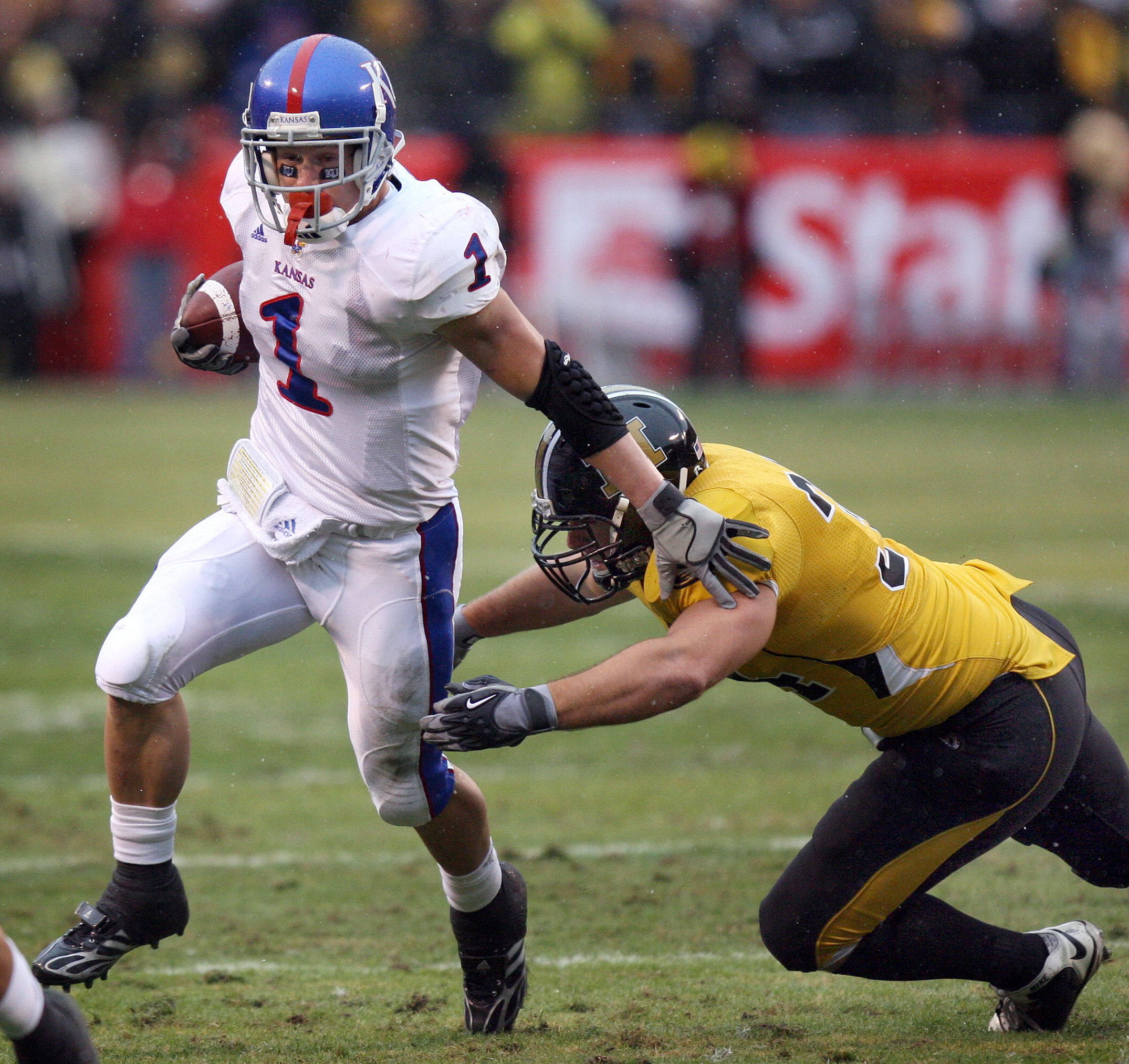 LAWRENCE, Kan. – Kansas (6-5 overall, 3-4 Big 12) battled No. 12 Missouri (9-2, 5-2) at Arrowhead Stadium in Kansas City, Missouri in the regular season finale for both teams on Saturday, Nov. 29, 2008. The meeting was the 117th at the time, the nation’s second-most played rivalry behind only Minnesota and Wisconsin, which met for the 118th time during the 2008 season.