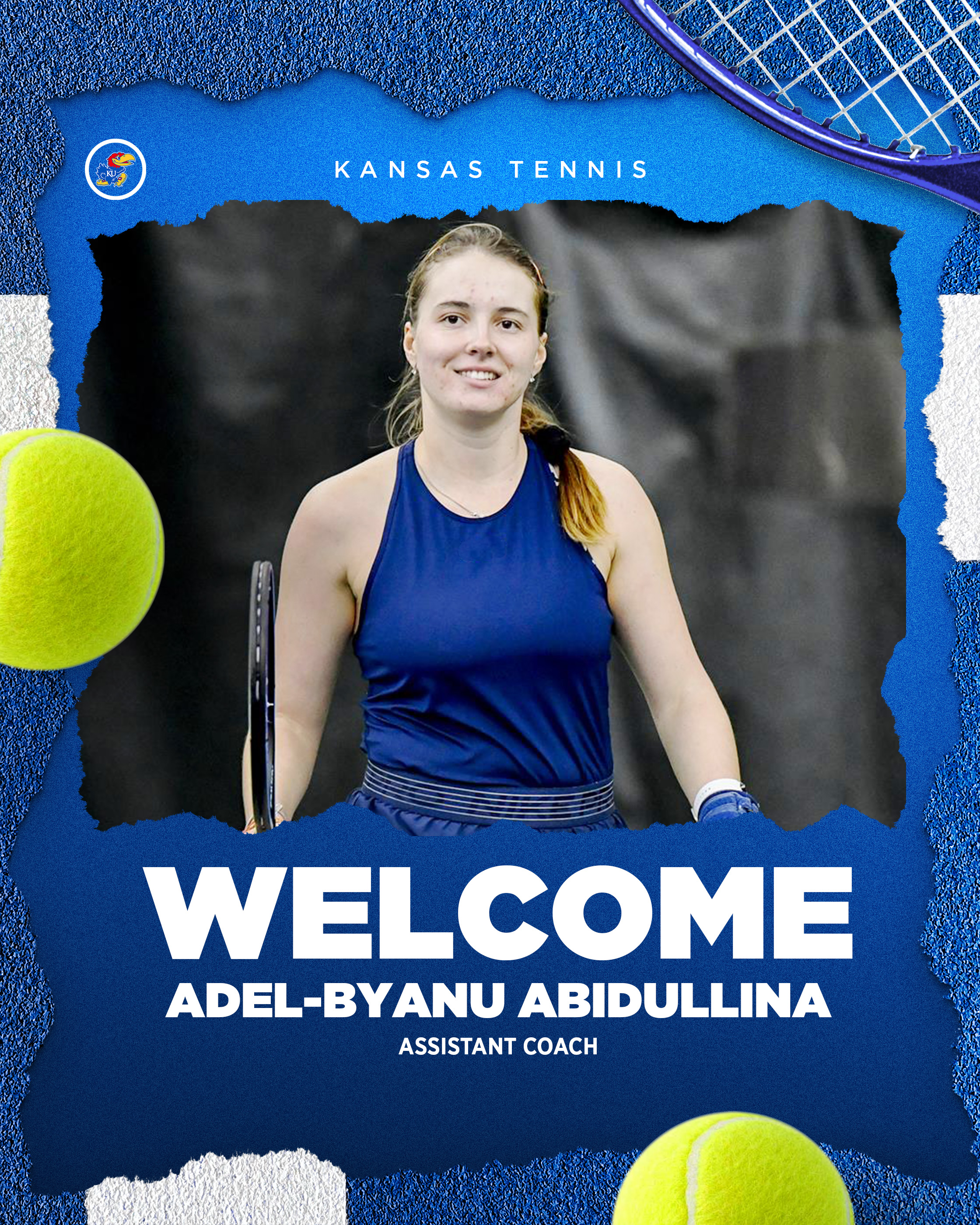 Abidullina joins the Kansas coaching staff as an assistant coach after completing her college tennis career. During the 2022-23 season at Delaware, Abidullina played No. 1 singles and No. 1 doubles for the Blue Hens and was ranked as high as No. 3 in Intercollegiate Tennis Association (ITA) doubles rankings. Abidullina advanced to the Quarterfinals of the ITA Fall National Championships and finished the season ranked No. 35 in the final ITA Division I doubles rankings with a record of 29-2, qualifying for the NCAA Doubles Championships.