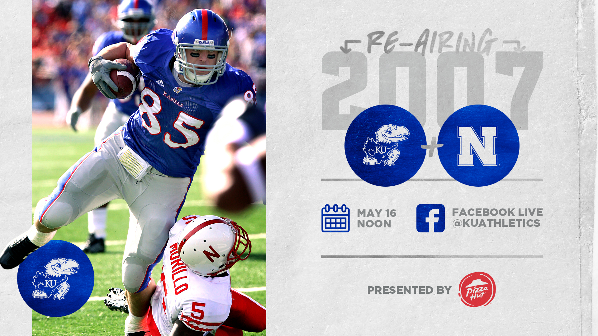 LAWRENCE, Kan. – In one of the most high-scoring games in Kansas football history, the Jayhawks defeated the Nebraska Cornhuskers, 76-39, on Homecoming on Nov. 3, 2007, which will be streamed live on the @KUAthletics Facebook page beginning Saturday, May 16 at 12 p.m. (CT), brought to you by our partners at Pizza Hut.