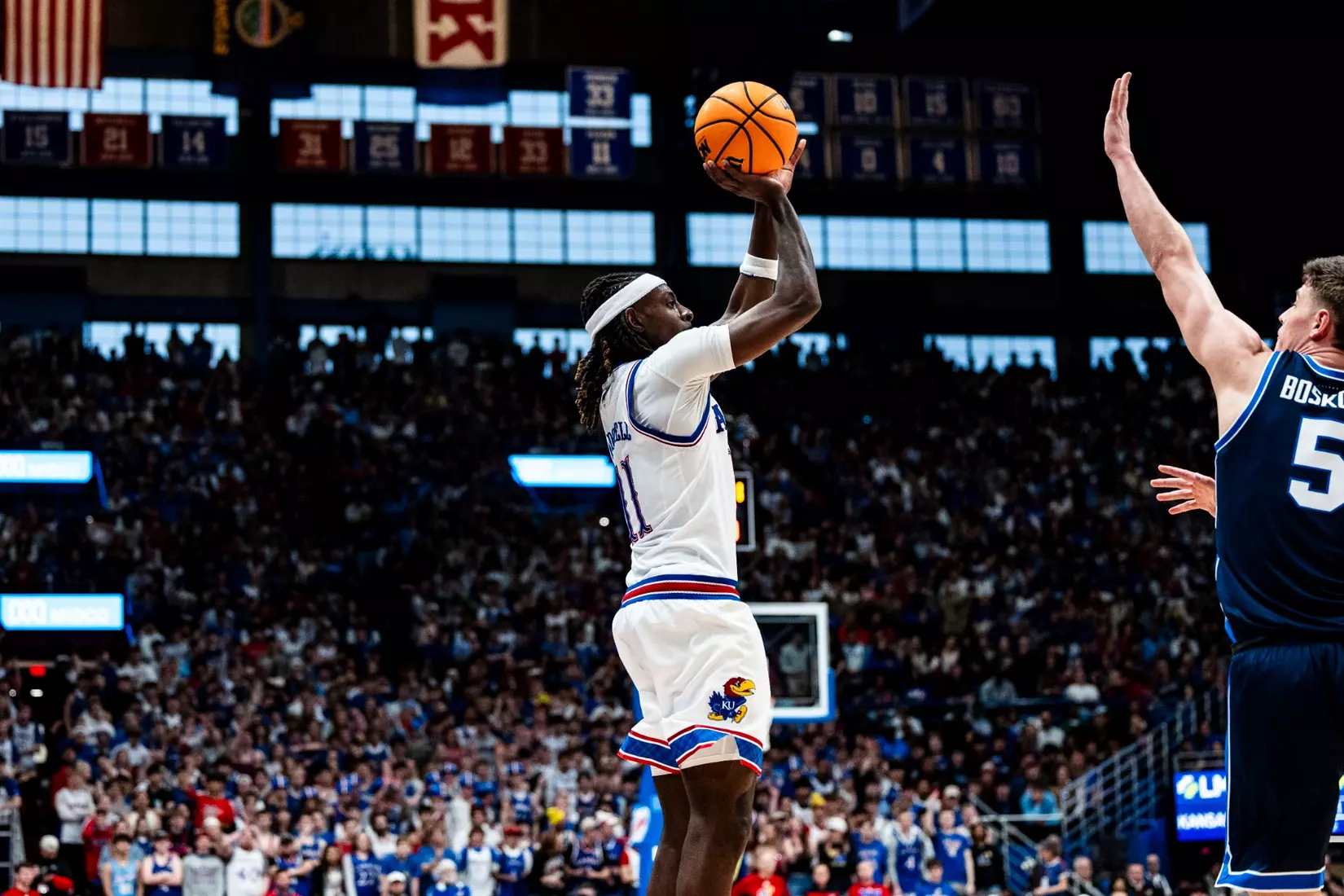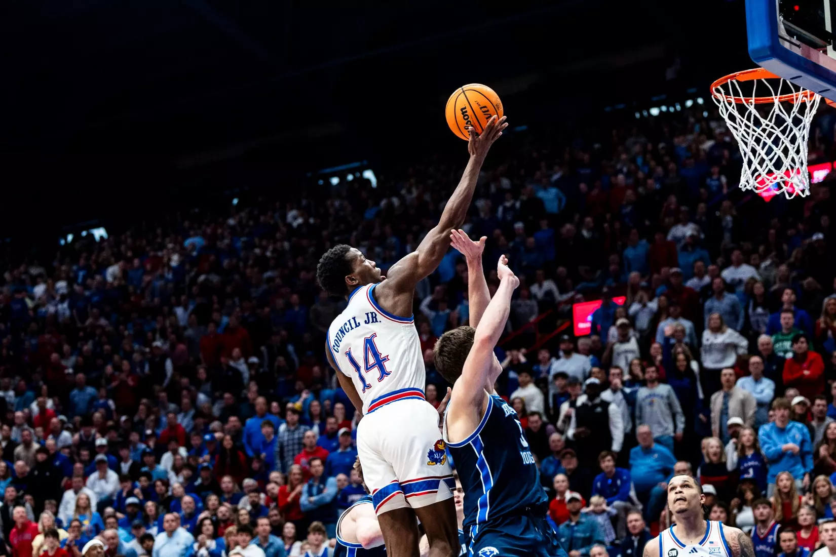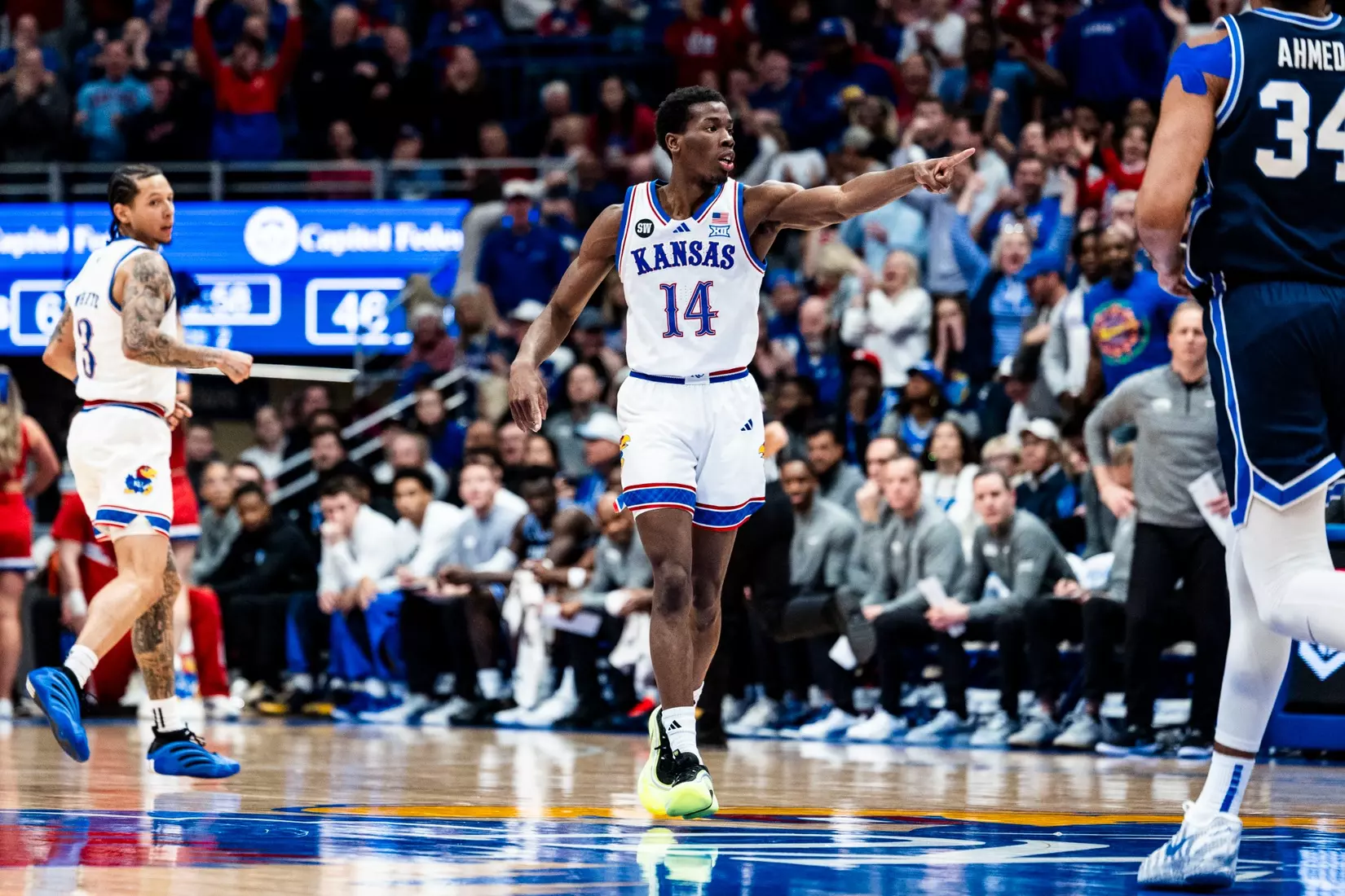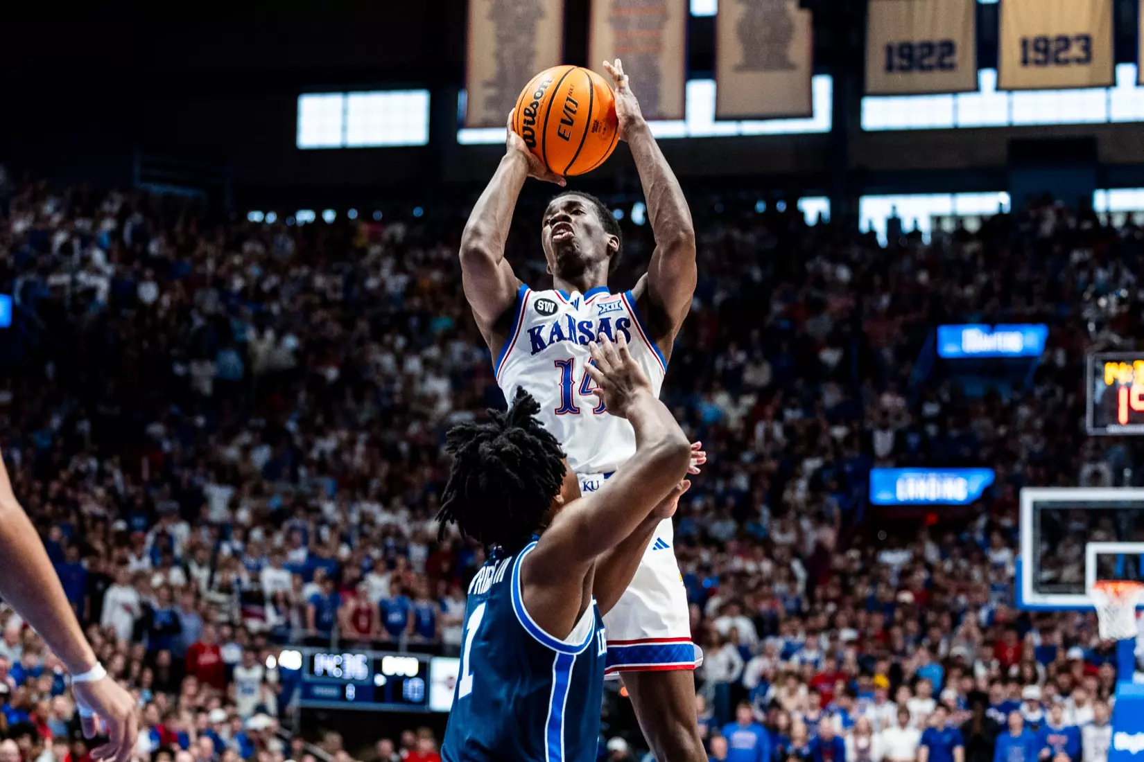 LAWRENCE, Kan. (AP) – Freshman Bryson Tiller scored a career-high 21 points and freshman Darryn Peterson scored 18 points in 20 minutes as No. 14 Kansas beat No. 13 BYU, 90-82, on Saturday in the 1,000th game played at historic Allen Fieldhouse.