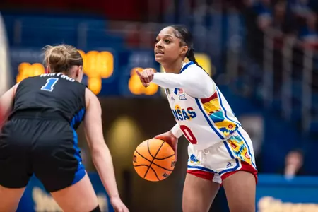 Started 31-of-34 games in her first season with the Jayhawks…Reached double figures in scoring 22 times on the year, with four games of 20+ points…Ranked fourth on the team in scoring, averaging 11.4 points per game…Scored a career-high 26 points against Kansas State (Jan. 29), hitting 7-15 field goal attempts, while tying a career-high with four three-pointers and eight free throws…Pulled down a season-best seven rebounds on two occasions: vs. Wichita State (Dec. 11), vs. Oklahoma (Feb. 19)…Shot 37.7 percent (130-345) from the field, 28.0 percent (35-125) from three-point range, and 79.3 percent (92-116) from the free throw line…Ranked second on the team with 102 assists and fourth with 41 steals…Also totaled 98 rebounds (2.9 per game), and 10 blocked shots.