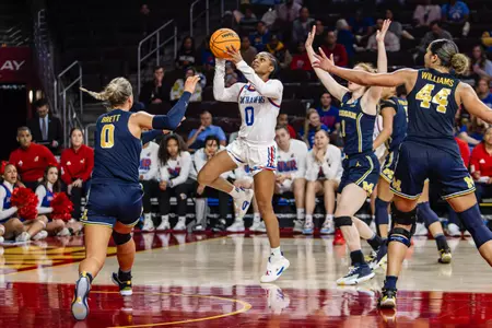 Named to the 2023-2024 Academic All-District Women’s Basketball Team…Started in all 32 games she played in as the Jayhawks’ point guard…Ranked fifth on the team in scoring averaging 9.7 points per game…Finished the year with 310 points, 78 rebounds (2.4 per game) and landed second on the team with 76 assists…Surpassed 1,000 career points spanning her time at Kansas and Tulsa…Reached double-digit scoring on 15 different occasions… Shot 37.7% (109-289) from the field and 32.8% (40-122) from the three-point line…Scored a season-high 21 points at Oklahoma…Had a season high six rebounds at Baylor and helped Kansas to a 69-52 victory over Houston (Feb. 8) with six assists…Picked up four points, three assists and three steals to help Kansas beat No. 4 Baylor (Jan. 10) 87-66 for the program’s first win against a top-five ranked opponent since 2009.Â